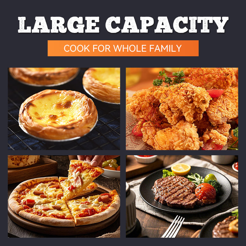 DUŻA POJEMNOŚĆ I WSZECHSTRONNOŚĆ — frytkownica ma pojemność 15 l, co pozwala na jednoczesne przygotowanie całego kurczaka, wielu skrzydełek z kurczaka, frytek, a nawet 7-calowej pizzy. Spełnia potrzeby różnych członków rodziny i nadaje się do różnych zastosowań kulinarnych.