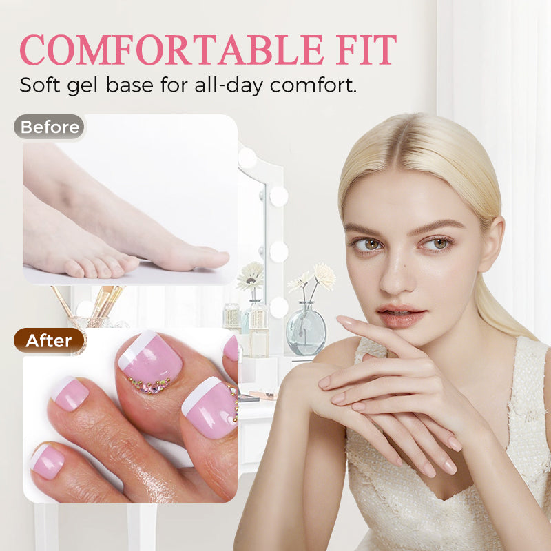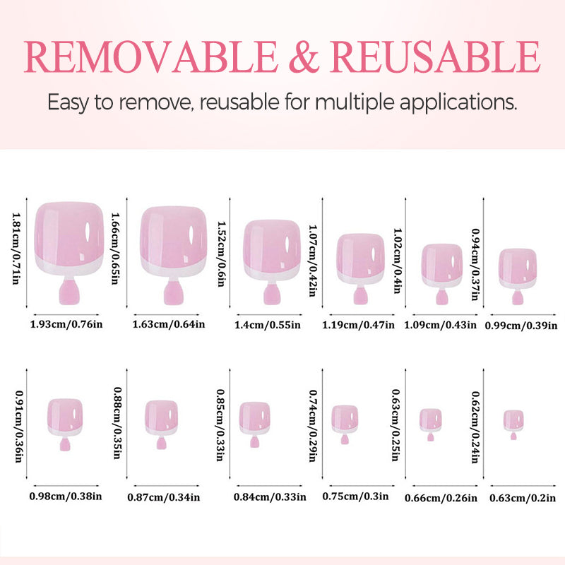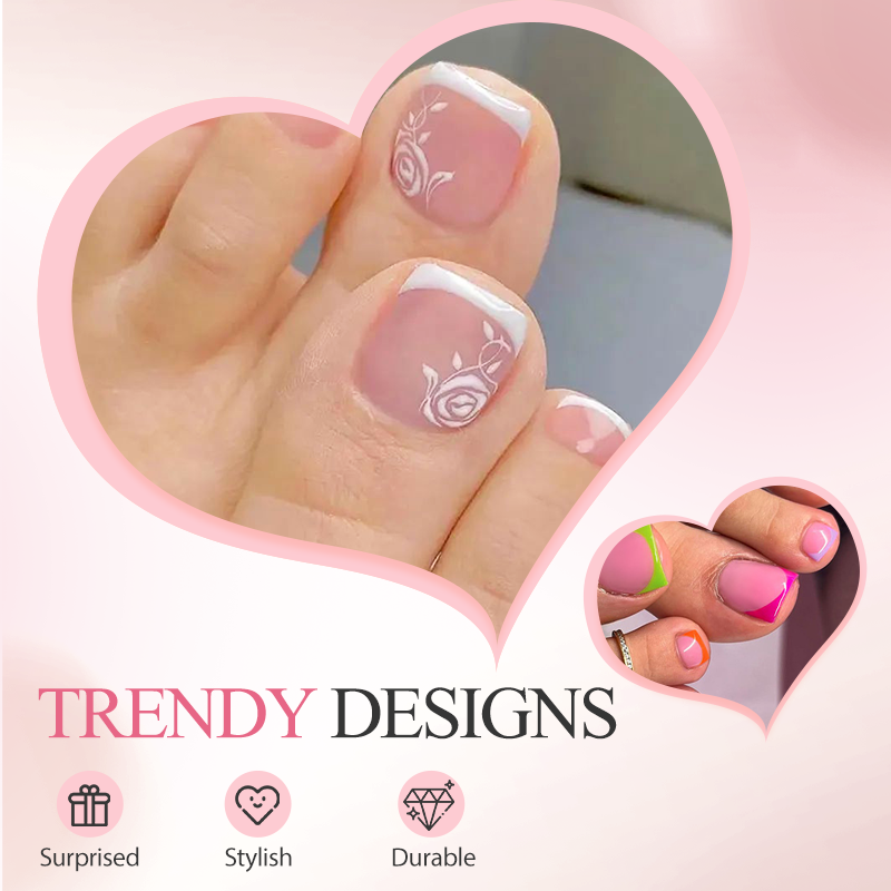 ZDEJMOWANE I WIELOKROTNEGO UŻYTKU:Łatwo zdejmij je bez uszkadzania naturalnych paznokci i używaj wielokrotnie, co sprawia, że są praktycznym i ekonomicznym rozwiązaniem dla idealnych paznokci u stóp.