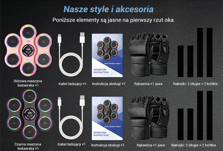 Zawartość Zestawu: Rękawice Bokserskie, 4 Podkładki EVA,