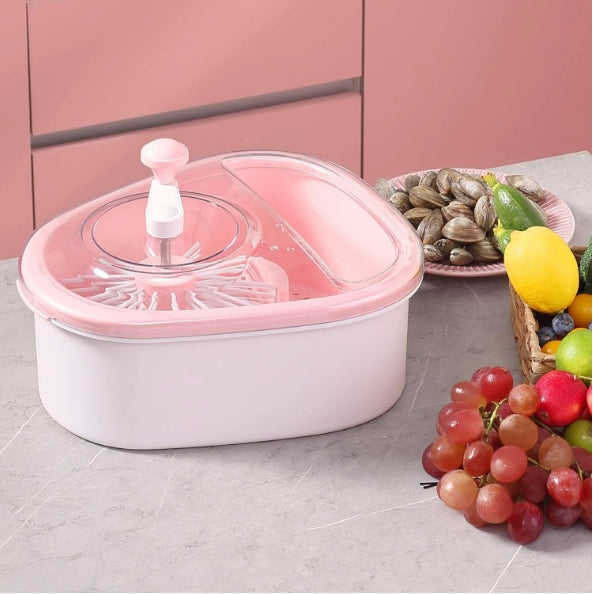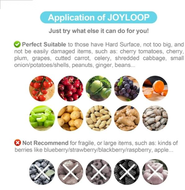 REWOLUCYJNE URZĄDZENIE KUCHENNE: innowacyjne i wyjątkowe urządzenie kuchenne, które umożliwia czyszczenie owoców bez użycia rąk, a ponadto sprawia, że proces ten jest łatwiejszy, bardziej przejrzysty i higieniczny. To nowe urządzenie do czyszczenia owoców jest wyposażone w kreatywny tryb obrotowego mycia wirowego, który pozwala szybko i dokładnie wyczyścić każdy owoc.