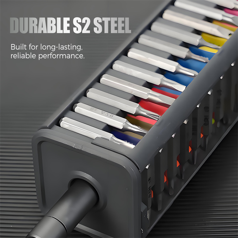 UNIWERSALNY ZESTAW 49 W 1 - Ten kompleksowy zestaw zawiera 46 wkrętaków ze stali S2, pęsetę i łomkę, wyposażając Cię do różnych zadań naprawczych. Od smartfonów i laptopów po okulary i konsole do gier - wykonuj każde zadanie z pewnością siebie.