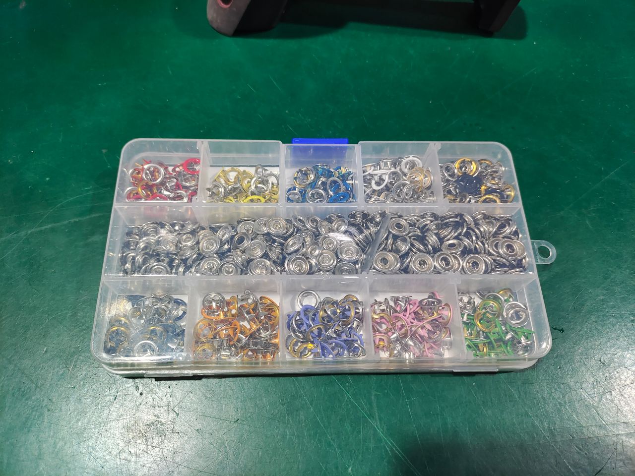 Do każdego zestawu SNAP potrzebujesz 1 -częściowej męskiej snap, 1 -częściowy snap -snap i 2 sztuk pustych pierścieni.