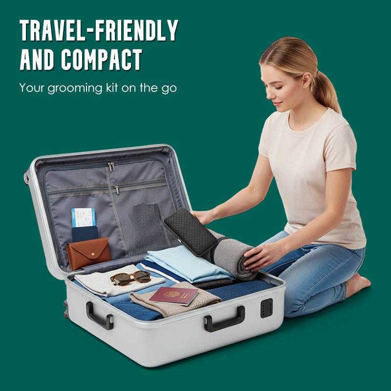 KOMPAKTOWA I PRZENOŚNA KONSTRUKCJA: Dzięki smukłemu profilowi i lekkiemu etui ten zestaw do pielęgnacji jest idealny do podróży lub przechowywania w torbie. Możesz dbać o swój wygląd w dowolnym miejscu i czasie, ciesząc się pełną wygodą.